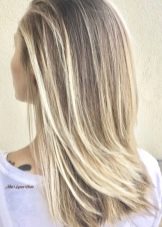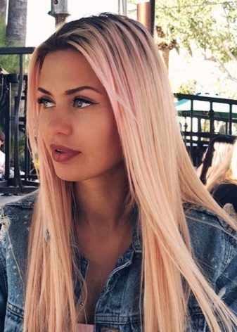 - Rovné krátké nebo rovné dlouhé vlasy vždy vypadají výhodně, pokud odstín blondýna úspěšně harmonizuje s tmavou barvou u kořenů vlasů.