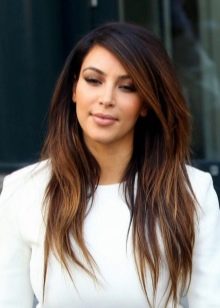 - Kardashianské sestry také často experimentují s jejich vlasy, výběrem moderních technik barvení. Například nejslavnější sestra - Kim velmi často odstraňuje konce jejích tmavých vlasů teplým odstínem blond. Hladký přechod z tmavého do zlatého písku vypadá obzvláště výhodně na dokonale narovnaných vlasech. Fashionista Chloe Kardashian také rád doplňuje její blond odstín vlasů slunnými světlými prameny.