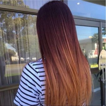 - Barevný člunsamozřejmě to není zdaleka vhodné pro každého, ale někdy můžete experimentovat. Přechod z tmavé na červenou na jasně narovnaných dlouhých vlasech vypadá velmi exoticky a nenuceně.