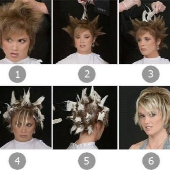 Chcete-li barvit krátké vlasy, je třeba nejprve rozdělit celé vlasy na malé zámky a poté je shromáždit pomocí speciálních sponek na prádlo. Každý shromážděný svazek je důkladně vyčesán tak, že vlasy vyčnívají, a poté je barvicí pigment nanášen zametacími a nerovnoměrnými tahy. Obvykle je nejtmavší odstín rozmazaný na kořenech, o něco světlejší uprostřed a konce vlasů jsou pokryty bledším složením.