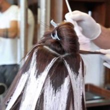 - Vlasy jsou rozděleny do zámků o tloušťce 1,5 až 2 centimetry. Nátěr se nanáší od zadní části hlavy a zbytek se připevňuje svorkami.