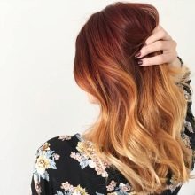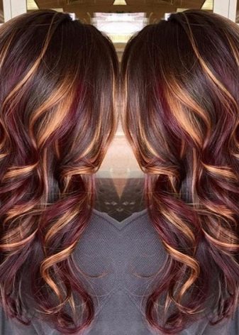 - tmavě zrzavé dívky budou v pohodě s prameny béžové, jasně červené, mědi, zlata a lososa.