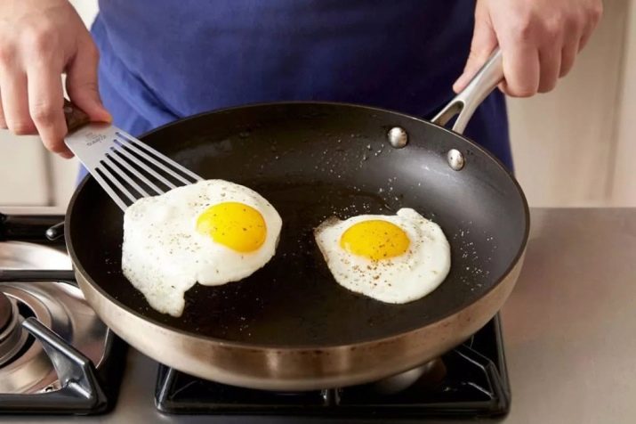 Litinová pánev umožňuje rovnoměrně ohřívat produkt na vaření a udržovat vysokou teplotu. Bohužel je tento pražič charakterizován velkou hmotností a zdlouhavým procesem vaření. Samostatně je třeba zmínit kontejnery s nepřilnavou vrstvou. V tomto případě může být postřik jakýkoli, protože technologie přípravy vajec je velmi jednoduchá. Nelepivé pánve se snadno používají, ale stojí za to opustit kovová zařízení.