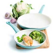 Díky speciálnímu povlakování na těchto pánvích je možné vařit s minimálním využitím oleje. Hotová jídla navíc snadno sklouznou z nádobí.