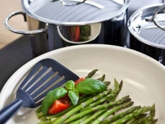 - Rukojeť design. Mohou být odlité, zašroubované a odnímatelné. Během vaření by se rukojeť neměla zahřívat, takže nádobí s plastovými nebo silikonovými držadly jsou dobrou volbou.