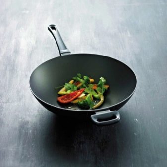 - Wok. Jedná se o kuželovitou pánev, pomocí které můžete smažit maso na vysoké teplotě. Tento typ produktu se nejčastěji kupuje na vaření orientálních jídel.
