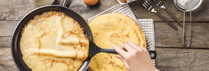 - Palačinky. Určeno pro vaření lívanců, palačinek, palačinek a sázených vajec.Liší se přítomností nízko nakloněných stran.