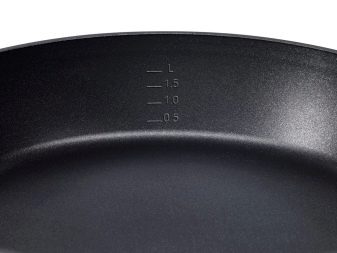 Zevnitř jsou pánve vybaveny značkou, která vám umožní určit hladinu kapaliny.