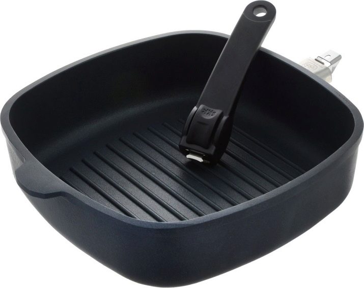 - grilovací pánev (žebrované dno pomáhá šetřit olej a dosáhnout atraktivní žebrované kůry na povrchu masa);