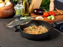 - Pokud je víko potřebné pro vaření rychlým tempem, doporučuje se vybrat kopii velké výšky. Takové modely jsou schopny vytvořit objemový termální polštář, který zajišťuje rychlé vaření.