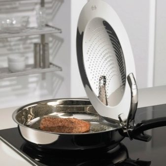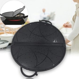 Další novinkou je stříkací síť. Může to vypadat jako obyčejné víko, ale z jemného pletiva. Příslušenství lze použít v případech, kdy jídlo nemusí vytvářet silnou páru, například při silném smažení masa. Pod klasickým víčkem nebude fungovat zlatá kůra, a pokud víko nepoužíváte, celý kachle, stěny a zástěra hostesky budou postříkány syčivým olejem. Jen v takových případech je navržena speciální stříkací čepice.