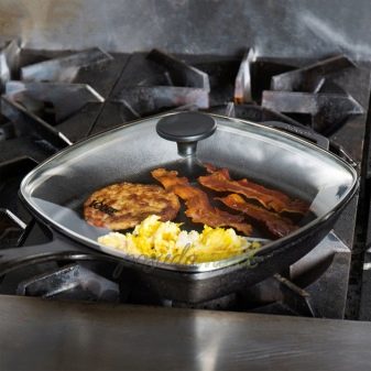 Obdélníkové výrobky používá se k přípravě velkých porcí ryb nebo masa. Při výběru pravoúhlého víka pro konkrétní misku je důležité znát přesnou délku a šířku a také zkusit vyzvednout kopii stejného výrobce jako pánev. Pouze takový model zajistí maximální těsnost. Obdélníkové odrůdy lze použít ke skladování potravin nebo k udržení tepla hotového jídla.