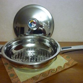 - Pokud máte v plánu často dušit zeleninu pod víkem, zvolte modely s otvory pro páru. Při procesu dušené zeleniny produkujte hodně šťávy (to není vhodné pro každé jídlo), a v případě použití takového příslušenství bude pára odstraněna speciálními otvory. Pokud chcete víko, které chcete v kuchyni univerzální, vyberte produkt s parními otvory, které mají uzavírací mechanismy.