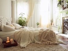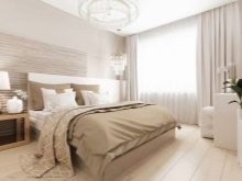Aby se ložnice mohla probudit, zvýšit účinnost po probuzení, stojí za to použít bílo-béžovou paletu, kombinace se šedou (v malém množství), slonovinu.