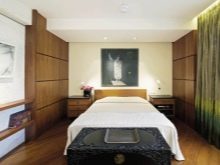 Všechny odstíny pro ložnici by měly být ztlumeny, ujistěte se, že najdete místo pro podrobnosti o červeném tónu. Podle výkladu čínských mudrců symbolizuje manželská harmonie. Ale kombinace černé a bílé v ložnici, tak moderní v moderních interiérech, by měla být opuštěna.