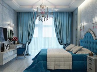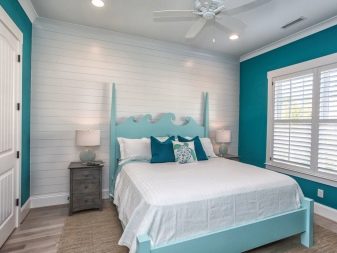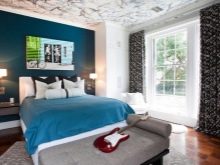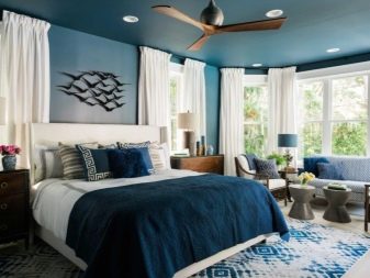 Příznivé pro zdravý spánek - modré a modré barvy. Je dokázáno, že lidé spící v takové ložnici spí v hlubokém a klidném spánku a probudí se v dobré náladě. Důvodem je skutečnost, že modro-modrá gama pomáhá zpomalit srdeční frekvenci a normalizovat krevní tlak.
