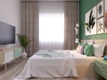 Následující interiér je postaven podobným způsobem. Pravda, namísto modré je hlavní barva zelená. Je kombinován se světle zelenou, bílou, tmavě hnědou. Výsledkem je velmi lehká, uvolněná atmosféra.