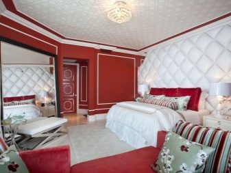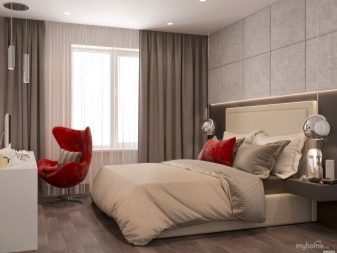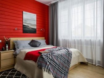 Není třeba proměňovat ložnici v jakýsi červený rakev, musíte dávkovat barvu. Je lepší kombinovat s béžovými šedými odstíny.