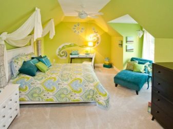 Neméně užitečné pro spánek jsou slunečné teplé odstíny zelené a žluté. Zelená barva snižuje úzkost, šetří stres a žlutá - zlepšuje náladu. Důležitá podmínka - barvy by měly být klidné, teplé barvy.