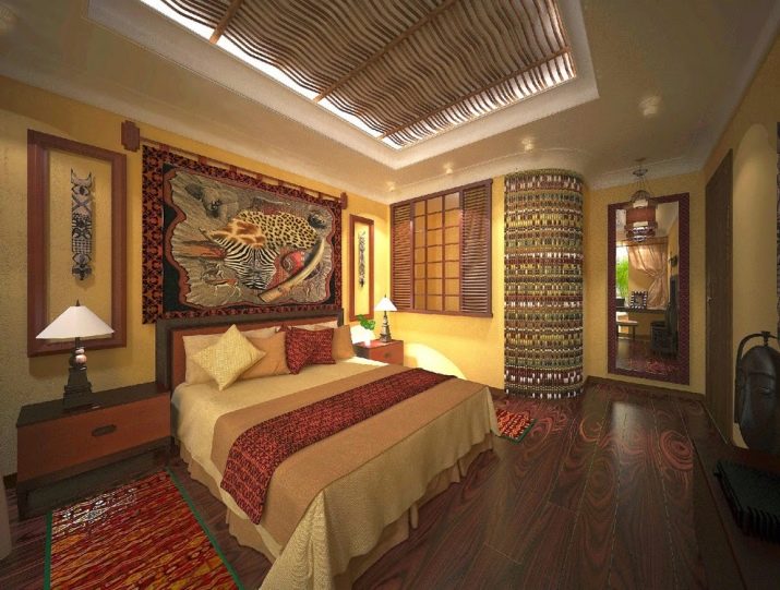 Nejlepším řešením pro tuto ložnici jsou zvířecí tisky. Předpokládá se, že nedovolují člověku úplně se uvolnit, mohou vyvolat emoční stres, úzkost.