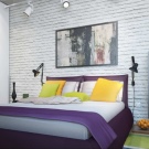 Ve třech tónech je však barevné schéma pokoje v brutálním stylu vzácné. Do interiéru se zpravidla vlévají jasné barvy a neobvyklé barevné kombinace. Spolu se stávajícím pozadím nastavili náladu pro celou místnost, přidali k ní bohémské nebo grungeové poznámky spolu s nějakým chaosem. Světlé barvy lze použít v tiskovinách plakátů nebo dokonce v abstraktních malbách, jakož i v jiných neobvyklých interiérových doplňcích.