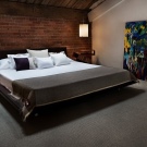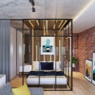 - zdůraznění spací postele a její zvýraznění na pozadí ostatních ostrovů v místnosti;