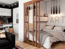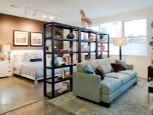 Pokud se jedná o typickou místnost, je možné v ní vybavit 2 funkční zóny. Prostřednictvím stojanu můžete ložnici rozdělit na ložnici a studovnu. Každá z těchto zón je lépe osvětlena vlastním osvětlením.