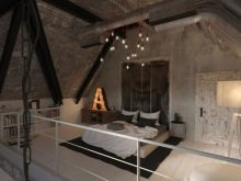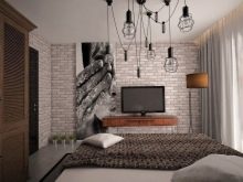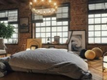 Osvětlení ložnice v podkroví se liší od obvyklého uspořádání lamp a jejich vzhledu. Například to může být mnoho hrubých typů příslušenství, navržených ve formě pravidelné kovové trubky se spoustou uzlů. Spider lustr nevypadá o nic méně působivý v loftovém stylu ložnice. Zde může být na stropních trámech docela dobře umístěno několik bodů s nastavením úhlu rozptylu světelného toku.