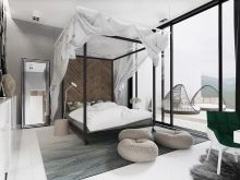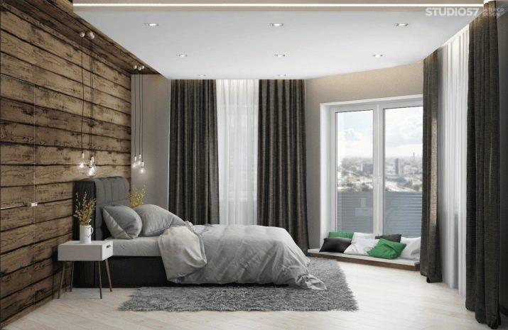 Například spolu s moderní postelí to může být vzácná komoda nebo dokonce houpací křeslo. Styl je náročný na každý prvek uspořádání a netoleruje nic nadbytečného v místnosti. Zároveň lze každý obytný kout odlišit vlastními metodami. V prostoru pro spaní bude koberec, který jasně stanoví hranice funkční oblasti.