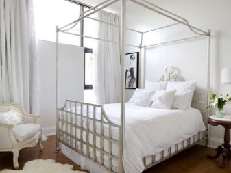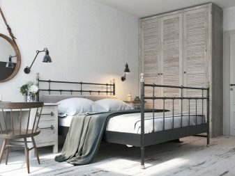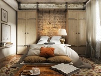 Postel pro uspořádání stylu podkroví je často vybírána minimalistickým způsobem. To vám umožní volitelně jej doplnit jednoduchým vrchlíkem pod kovovým rámem.Vybrané skříně by se měly alespoň mírně shodovat s daným stylem. Vsadit se na to by mělo být provedeno na formuláři a fasádách. V malých místnostech, kde je atmosféra podkroví obnovena, by měl být vestavěný typ skříně.