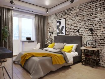 Počet cihel ve výzdobě zdi se může lišit, což závisí na typu konkrétního uspořádání. Například v jednom případě je to dvojice sloupů, ve druhé - jedna zeď, ve třetí - pouze část přízvučné stěny v oblasti hlavy postele. Cihla může být nejen přirozená: díky schopnostem moderní výroby může být napodobena zeď. Současně kvalitní obklad přesně reprodukuje požadovaný druh materiálu.