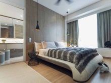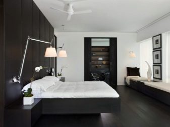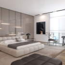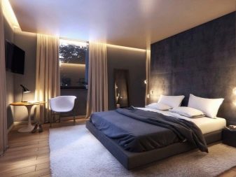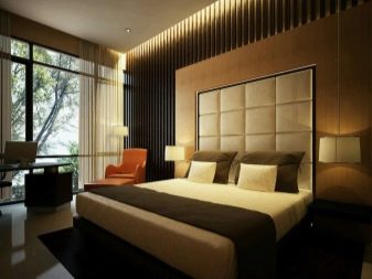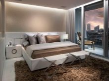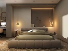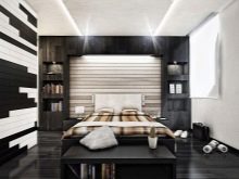 Ložnice, zařízená v moderním stylu, je zaslouženě populární. Místnost získává díky svému barevnému schématu, plynulosti a zefektivnění linií a přítomnosti materiálů přírodního původu obzvláště vzdušnou, světlou a zároveň elitní atmosféru.