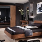Postel, skříň a noční stolek lze vyzvednout v ořechové barvě z přírodního dřeva.