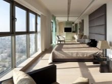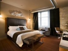 Velká okna s dřevěnými rámy jsou ideální pro zdobení ložnice v moderním stylu. Přítomnost barevného skla, klenutého typu, je vhodný pro doplnění celkového obrazu. Art Nouveau je univerzální styl, který kombinuje jednoduchost, půvab a kreativitu a odmítá nadměrné patos a pompéznost. V závislosti na barevném schématu a detailech interiéru může být secesní ložnice skvělou volbou pro mladou dívku nebo chlapce i pro obchodní osobu či pár.