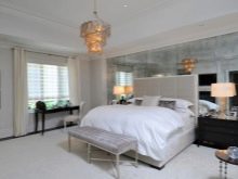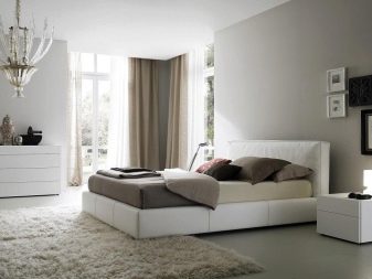 Pro design v secesním stylu musíte navrhnout podlahu, strop a stěny v bílé nebo světlé mléčné barvě. Akcenty budou nábytek ze dřeva a malované ve světle šedé barvě. Postel, skříň se zrcadlovými dveřmi, komoda a skříň by měly být ve stejném odstínu. Do kompozice se úspěšně vejde šedý nebo šedobílý koberec.
