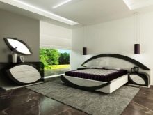 Hlavním nábytkem v ložnici je postel. Mělo by být vyrobeno z kvalitního dřeva nebo v kombinaci přírodního materiálu s kovem. Malá postel je vhodná pro kompaktní ložnici. Hlava může být zdobena kovanými vzory nebo potažena pravou kůží. Barva tohoto nábytku by měla být kombinována s barvou obecného pozadí, nikoli vyniknout, ale doplnit ji. Velké ložnice mohou využívat kulatou postel. Vypadá to velmi působivě, zejména pokud dáte do blízkosti přírodní oválný koberec.