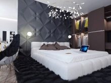 Stěny ložnice, vyzdobené v moderním stylu, není obvyklé pokrývat tapetu. Obecně je lepší zvolit dekorativní omítku. Texturovaná tapeta je vhodná pro zvýraznění jedné části místnosti.