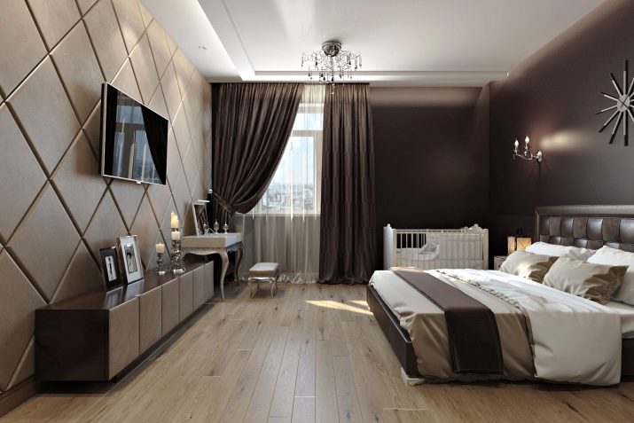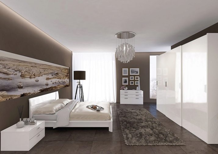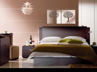 Při návrhu místnosti vypadá nejvýhodněji písek, slonová kost, světle fialová nebo modrá, stejně jako zaprášená šeřík, růžová nebo šedá. Pro hlavní pozadí ložnice je nejvhodnější perlový nebo béžový odstín. Podrobnosti z tmavých, hlubokých tónů budou skvělým doplňkem hlavní barvy místnosti.