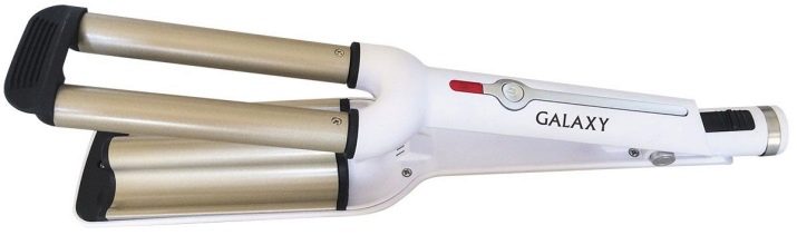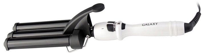 Galaxy GL4606 nazývá trojitý styler. Výrobce požaduje 10 provozních režimů, což je ve skutečnosti pouze 10 teplotních režimů. Toto je však velká výhoda tohoto modelu oproti ostatním, protože umožňuje použít zařízení pro vlasy různých struktur a hustot. Příkon zařízení je 70 wattů, počet topných článků je 3.