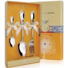U svateb a výročí si nejčastěji volí sady velkého počtu zařízení pro 10 nebo 12 osob, pro domácnosti se můžete omezit na 4 - 6 osob. Samostatně můžete vybrat sadu pro 1 osobu, tj. Dítě. Toto je jediná stará tradice, která se stala moderním způsobem - dát dítěti stříbrnou lžičku za zub. Pokud nevíte, jak potěšit mladou matku, dejte pro první použití sadu stříbrných jídel. Zpravidla se skládá z dětské lžíce, vidličky a nože. Nyní mnoho výrobců vytváří skutečná umělecká díla s kreslenými postavičkami, zvířaty a ptáky, které přitahují děti.