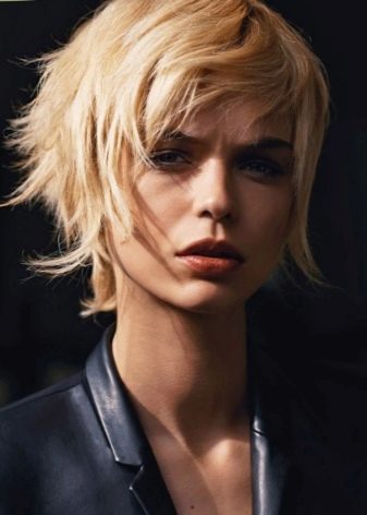 - Odvážná a velmi relevantní varianta pro krátkou délku vlasů s rozcuchanými prameny a asymetrickými rány.