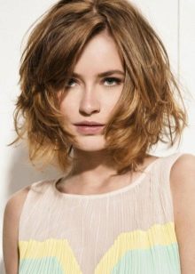 Bob je poměrně běžný účes, skvělý pro vlnité vlasy střední délky. Na žádost majitele se může měnit. Podobný střih lze stylizovat nezávisle. Vždy zůstane módní a relevantní. Můžete použít rány. Takové možnosti jsou docela krásné a velkolepé. Bangs mohou být vyrobeny rovně nebo šikmo.