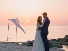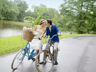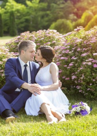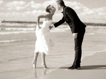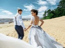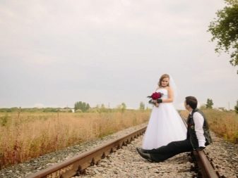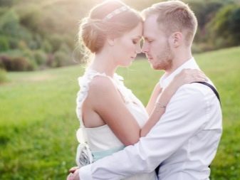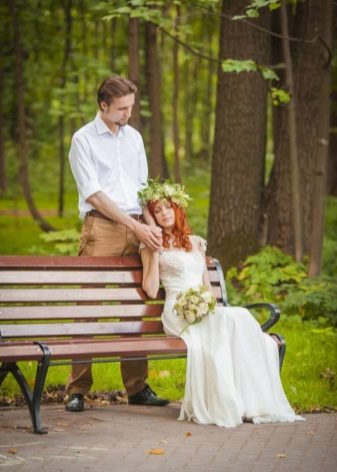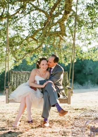 - milenci vypadají velmi dobře vedle sebe, tato volba je optimální pro svatební fotografické sady i venku - na houpačce, na řece nebo na nábřeží;