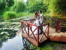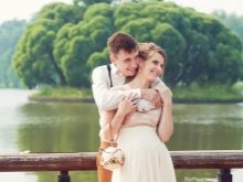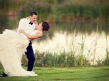 - U rybníka. Rybník nebo řeka se může stát ozdobou jakéhokoli svatebního rámu. Mladí lidé, kteří se objímají na břehu řeky, vždy vypadají dojímavě a roztomilý. Získá se zejména atmosférický snímek s rákosím, ale městské vodní útvary nevypadají o nic horší - obvykle taková místa jsou vybavena mosty a krajinářskými postavami, takže mohou být ideálním řešením pro fotografování.
