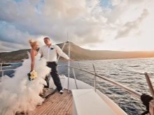- Na jachtě. Pro ty novomanžele, kteří chtějí zdůraznit svůj styl, luxusní životní styl a bohatství, budou elegantní rámy na jachtě tou nejlepší volbou.Díky platformě vodní dopravy, přírodní krajině a městskému prostředí, které je v pozadí mírně rozmazané, je focení opravdu drahé a smyslné.