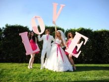 - Objemová písmena. Velká písmena, která lze kombinovat do slov, jsou při svatební střelbě vždy populární. Nejběžnějším nápisem je samozřejmě LÁSKA. Slova tohoto druhu jsou všude dobrá. Jsou umístěny ve fotozóně, poblíž sladkého stolu, poblíž místa, kde sedí mladí a ostatní.