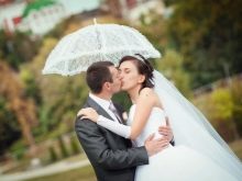 Pokud vás například při fotografování v parku zachytil déšť, můžete se skrýt pod korunou šířících se stromů nebo v útulném altánu a pokračovat v fotografování. A v dešti můžete vykreslit romantiku - šaty a vlasy se samozřejmě zvlhnou, ale atmosféra obrázků bude nepopsatelná.