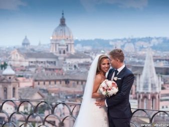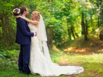Mladí lidé si samozřejmě budou muset vyměnit oblečení, ale hlavní detaily svatebních šatů - svatební závoj, boutonniere a kytici nevěsty mohou zůstat pozadu - ujistěte se, že obrázky budou skutečně úžasné.