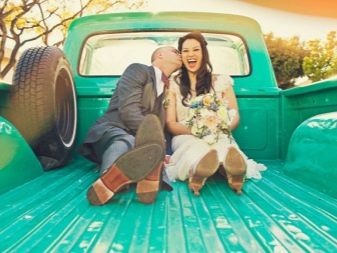 Rámy jsou v kufru auta velmi zábavné, například když se mladí lidé líbají v kufru auta, a ještě zábavnější jsou obrázky, kde nevěsta a ženich budou představovat v zadní části kamionu, což by se zdálo, že vůbec není vhodné pro svatební fotografii.
