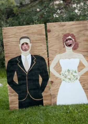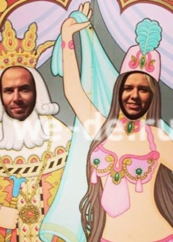 - Tantamareschi. Rámy s kartónovými nebo plastovými malými stojany, kde jsou vyříznuty otvory pro tváře, jsou velmi zábavné. Na obrázcích tak můžete vyzkoušet výbavu aristokratů, superhrdinů, pirátů, pohádkových postav a mnoha dalších. Stylové detaily mohou přidat barvu - například rámeček vždy vypadá výhodně, když ženich maluje štětcem portrét své nevěsty, nebo naopak.